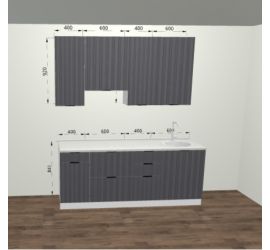 Размер кухонного гарнитура: Ширина левой стороны 2800 мм. Ширина правой стороны 2000 мм. Высота 2336 мм. Глубина 600 мм. (с учетом столешницы)