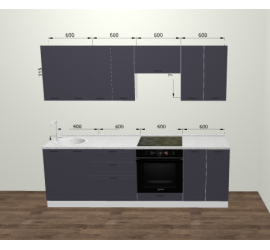 Размер кухонного гарнитура: Ширина левой стороны 3000 мм. Ширина правой стороны 1700 мм. Высота 2336 мм. Глубина 600 мм. (с учетом столешницы)