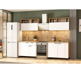 Кухонный гарнитур Пасадена 1,5 белый / шёлковый камень / дуб вотан