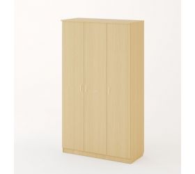 Трехдверный шкаф состоит из двух секций: одна оснащена полкой и штангой, вторая пятью нишами. Шкаф очень вместительный и отлично подойдет для спальни, прихожей или гардеробной
