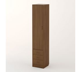 Пенал с тремя выдвижными ящиками отличается простотой и лаконичностью. За дверью находятся полки, что делает пенал очень вместительным. Небольшие размеры пенала позволят разместить его даже в небольших помещениях.